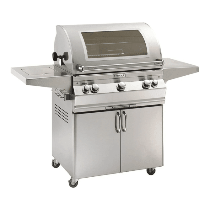 Fire Magic Aurora A660s 30-Inch Natural Gas Freestanding Grill w/ Flush Mounted Single Side Burner, Backburner, Rotisserie Kit, Magic View Window and Analog Thermometer - A660S-8EAN-62-W - Fire Magic Grills