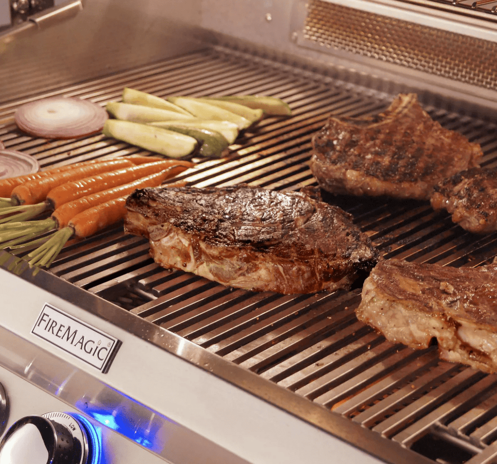 A disposable drip tray system makes cleanup a breeze and reduces the chance of grease flareups. Solid, raised hangers line the sides and back of the grill for a seamless look when placed into a countertop or island. A 120 VAC power source is required for ignition, as well as for the lighting functions. With many of the same premium features as the Echelon series of grills, the Aurora series from Fire Magic is the perfect centerpiece for your luxury outdoor kitchen.