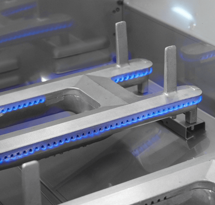This heat-resistant ceramic glass window is designed to operate at temperatures up to 1,400 degrees. It lets you monitor the interior of your grill without having to lift the lid, thus losing precious heat. Inside, this grill features three cast stainless steel E-burners, made with 1/4-inch thick walls and precision porting, that combine for 90,000 BTUs. Reliable hot surface ignition always lights your burners where others might fail.