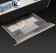 This display has 4 zone temperature reading and can be used to monitor the included food probe. With finger touch controls, you can set temperatures, monitor cooking time, switch the internal lights on or off, and even choose between 4 colors for the display. The double-walled, spring assisted hood opens 90 degrees for easier access and more efficient exhaust. Built into the hood is the Magic View Window.
