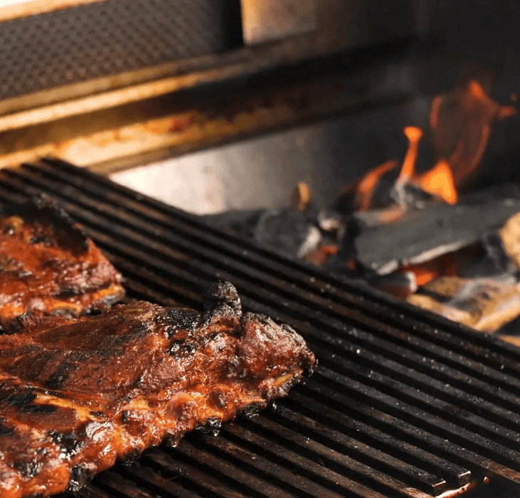 The warming rack above can be adjusted and moved out of the way when not in use. In the rear of the grill is a Quantum stainless steel infrared backburner for the included heavy-duty rotisserie kit that produces 13,000 BTUs of radiant heat. This burner uses stainless steel foam, which provides double the heat per BTU. Additionally, Echelon Black Diamond grills come with a charcoal/smoker basket for adding a delicious, smoky flavor to your cook. For nighttime grilling, the interior of the grill is lit by two halogen lights.