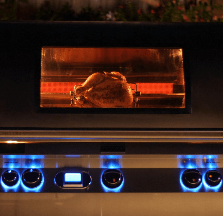 The double-walled, spring-assisted hood opens 90 degrees for easier access and more efficient exhaust. Built into the hood is the Magic View Window. This heat-resistant ceramic glass window is designed to operate at temperatures up to 1,400 degrees. It lets you monitor the interior of your grill without having to lift the lid, thus losing precious heat. Inside, this grill features three cast stainless steel E-burners, made with 1/4-inch thick walls and precision porting, and a left side infrared burner that combine 112,000 BTUs. Reliable hot surface ignition always lights your burners where others might fail.