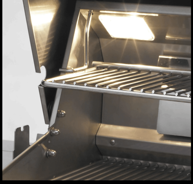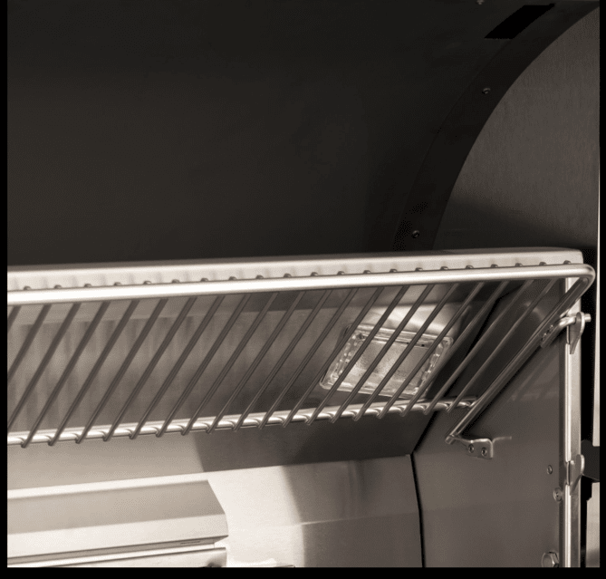 This display has 4 zone temperature reading and can be used to monitor the included food probe. With finger touch controls, you can set temperatures, monitor cooking time, switch the internal lights on or off, and even choose between 4 colors for the display. The double-walled, spring-assisted hood opens 90 degrees for easier access and more efficient exhaust. Built into the hood is the Magic View Window. This heat-resistant ceramic glass window is designed to operate at temperatures up to 1,400 degrees. It lets you monitor the interior of your grill without having to lift the lid, thus losing precious heat.
