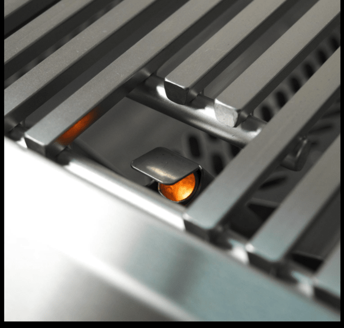 Inside, this grill features three cast stainless steel E-burners, made with 1/4-inch thick walls and precision porting, that combine for 75,000 BTUs. Reliable hot surface ignition always lights your burners where others might fail. Flash tubes serve as a backup. Flavor grids sit above the burners to spread heat evenly and protect the burners from debris and grease. These flavor grids have attached heat zone separators, allowing you to create independent heat zones at the surface of the grill for varied cooking options.