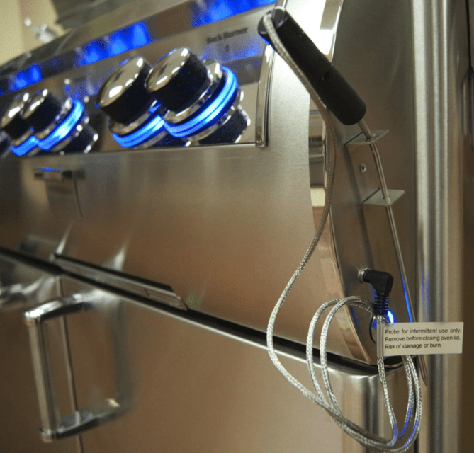 The Echelon Diamond E660S freestanding propane gas grill features 304 stainless steel construction for lasting quality, and modern styling with a sleek, contoured control panel that includes LED-backlit comfort touch knobs and a state-of-the-art digital thermometer display. This display has 4 zone temperature reading and can be used to monitor the included food probe. With finger touch controls, you can set temperatures, monitor cooking time, switch the internal lights on or off, and even choose between 4 colors for the display.