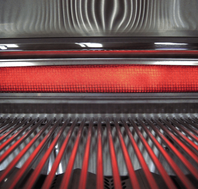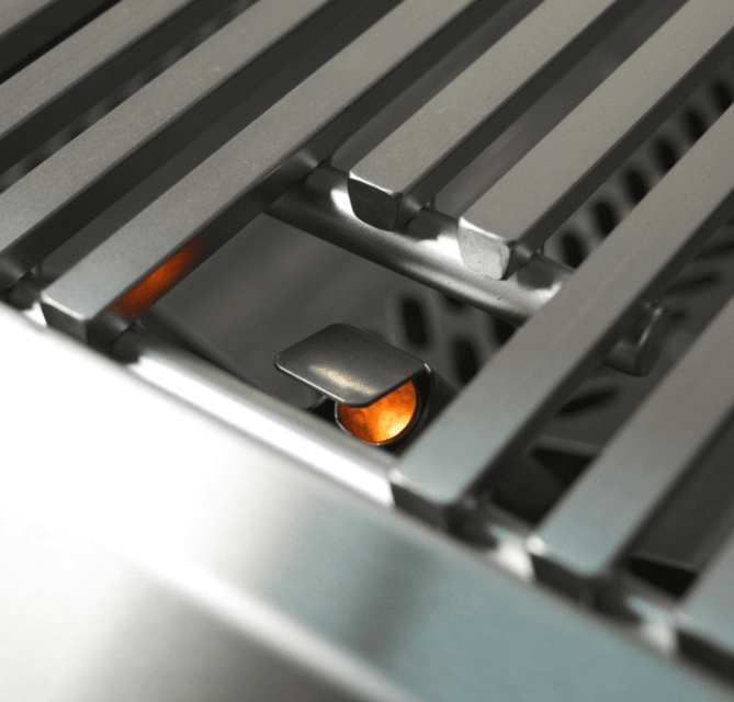 Flash tubes serve as a backup. Flavor grids sit above the burners to spread heat evenly and protect the burners from debris and grease. These flavor grids have attached heat zone separators, allowing you to create independent heat zones at the surface of the grill for varied cooking options. The 660 sq. in. cooking surface consists of the patented Diamond Sear cooking grids. These grids feature a matte, non-stick surface, and a trapezoidal shape that optimally transfers heat from the burner to the wide surface of the cooking grids.