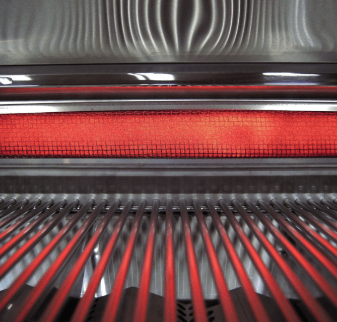 The double-walled, spring-assisted hood opens 90 degrees for easier access and more efficient exhaust. Built into the hood is the Magic View Window. This heat-resistant ceramic glass window is designed to operate at temperatures up to 1,400 degrees. It lets you monitor the interior of your grill without having to lift the lid, thus losing precious heat. Inside, this grill features two cast stainless steel E-burners, made with 1/4-inch thick walls and precision porting, and a left side infrared burner that combine 90,000 BTUs. Reliable hot surface ignition always lights your burners where others might fail.