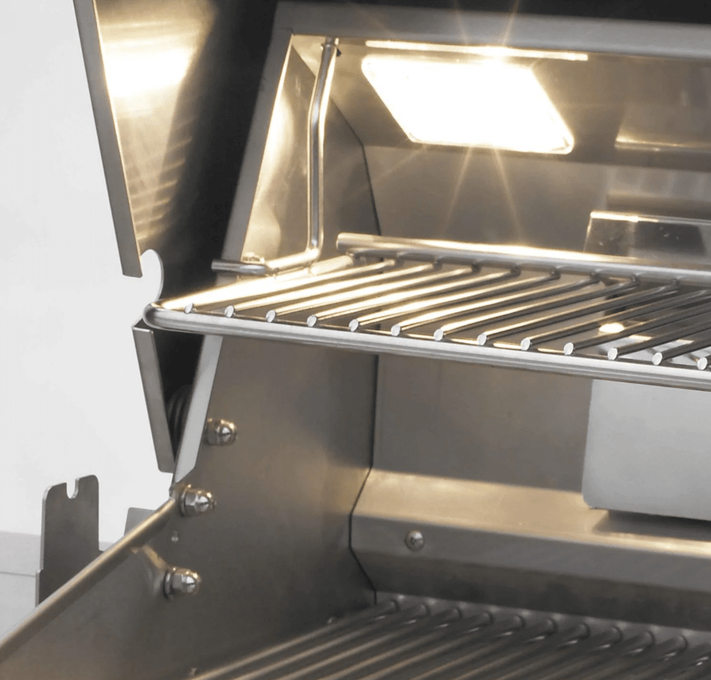 Additionally, Echelon Diamond grills come with a charcoal/smoker basket for adding a delicious, smoky flavor to your cook. For nighttime grilling, the interior of the grill is lit by two halogen lights. A new, larger drip tray with ball bearing glides makes cleanup with the disposable drip pan system even easier than before. Solid, raised hangers line the sides and back of the grill for a seamless look when placed into a countertop or island. A 120 VAC power source is required for ignition, as well as for the lighting functions. With all of these premium features, the Echelon Diamond series from Fire Magic defines luxury grilling.