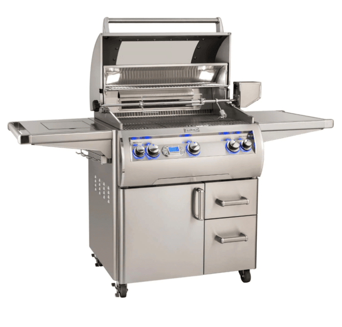 The Fire Magic Echelon Diamond E660S 30-Inch Propane Gas Grill W/ One Infrared Burner, Side Burner, Magic View Window, Rotisserie, & Digital Thermometer ( E660S-8L1P-62-W ) by Fire Magic Grills. Known for crafting American-made premium grills for over 75 years, Fire Magic is dedicated to providing its customers with a quality outdoor cooking experience.