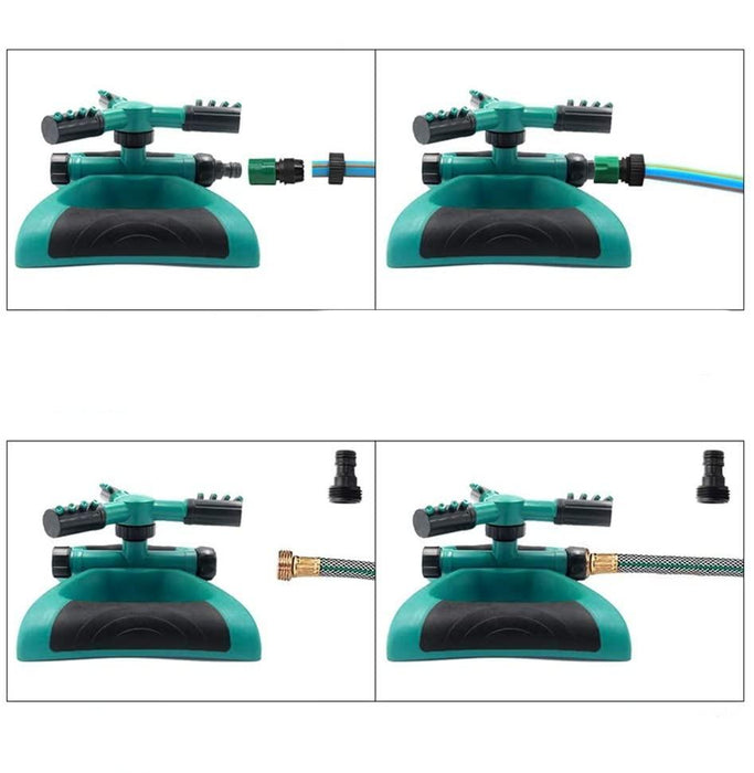 PERFECT LAWN IRRIGATION - The garden sprinkler has 360-degree automatic rotating water spray, 3 adjustable rotating arms, and 12 different angle spray nozzles. The water from this sprinkler falls in a uniform, rain-like pattern, watering every corner of your garden and lawn.