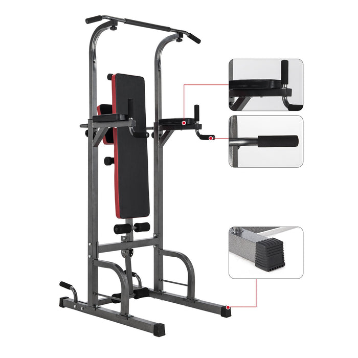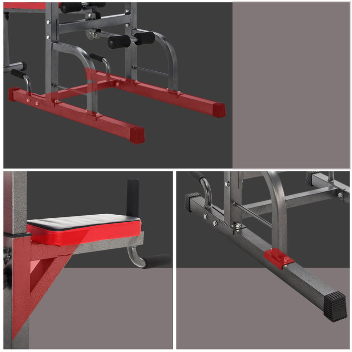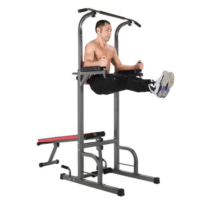 Indoor Home Pull Up Bar Stand Dip Station w/ Sit Up Bench