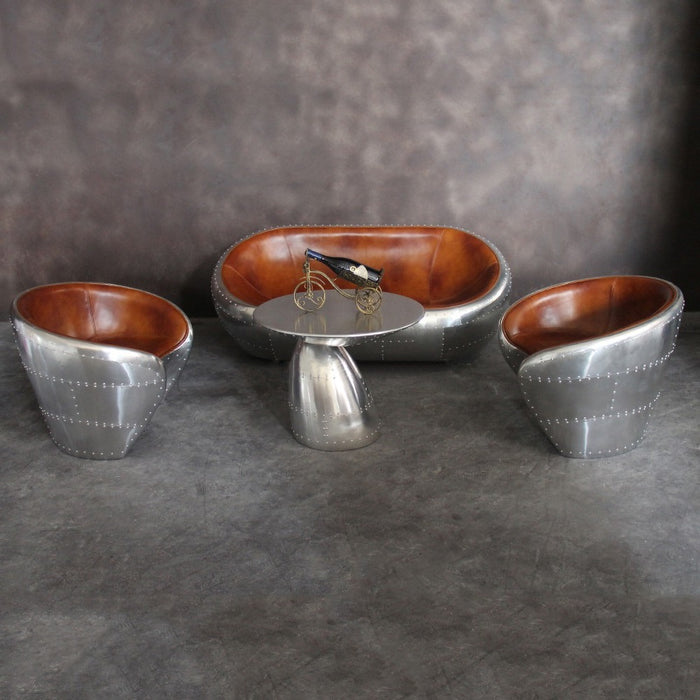 Industrial Loft Upholstered Aviator Chair Brown Leather Barrel Chair