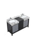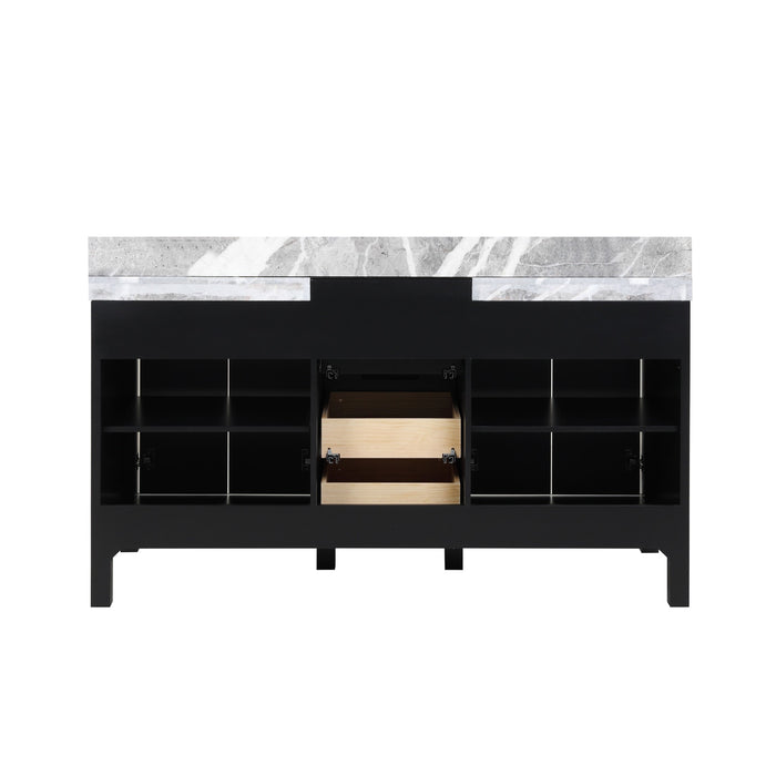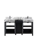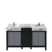 Lexoro Zilara 60" Black and Grey Double Vanity, Castle Grey Marble Tops, White Square Sinks, and Monte Chrome Faucet Set - LZ342260DLISFMC