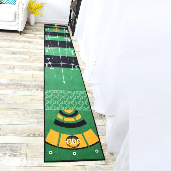 Wait no more and grab our Premium 10ft Golf Putting Fat Indoor Practice, which gives an incredible feeling of playing golf in a room. The putting mat is wide and long, and its greeny grass texture gives a feeling of golfing in the ground.