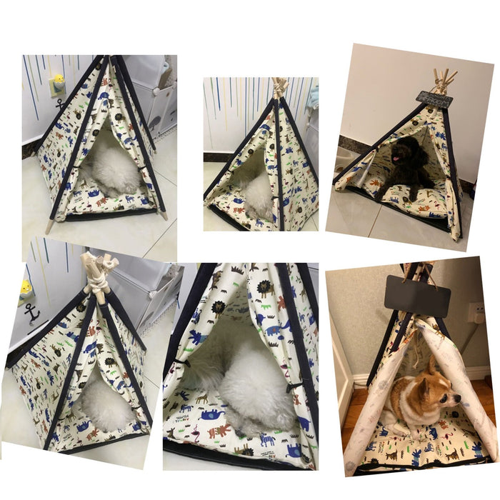 Pet Teepee Tent with Cushion for Dogs Bed House