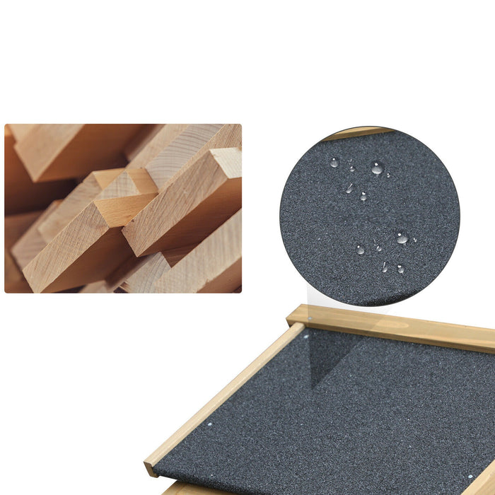 There is a ramp in the backyard chicken coop, making it easy for the chickens to exit or enter it. With a built-in nesting box in our mobile chicken coop, chickens lay eggs. The waterproof pitch roof of the chicken coop keeps the chickens dry.