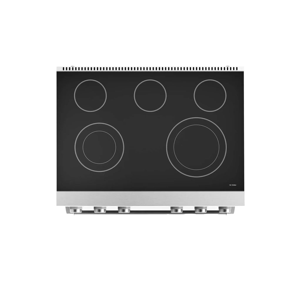 Thor Kitchen 6-Piece Appliance Package - 36-Inch Electric Range, Wall Mount Range Hood, Refrigerator, Dishwasher, Microwave, and Wine Cooler in Stainless Steel