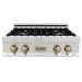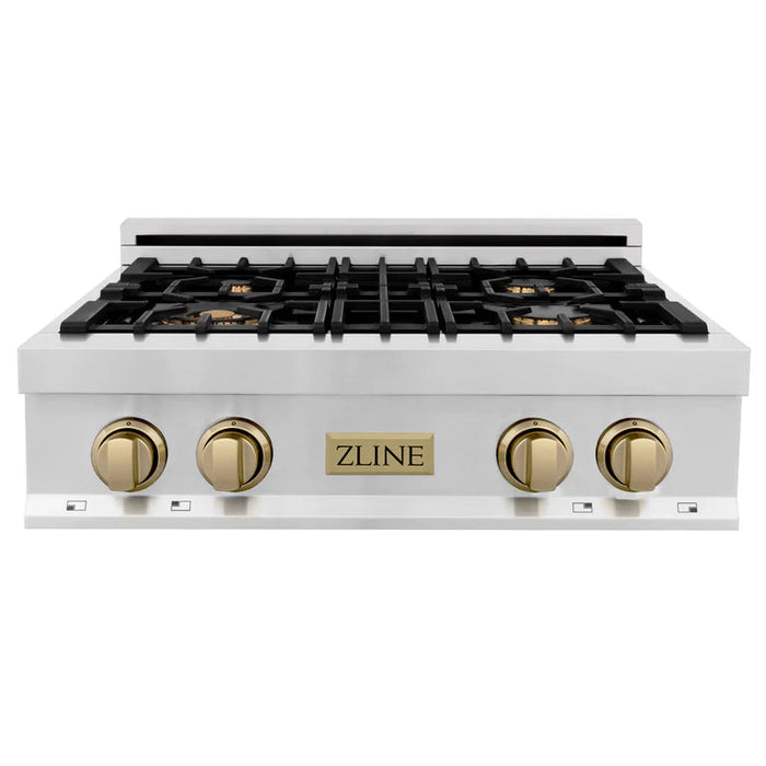 ZLINE Autograph Edition 30 in. Porcelain Rangetop with 4 Gas Burners in Stainless Steel and Champagne Bronze Accents, RTZ-30-CB
